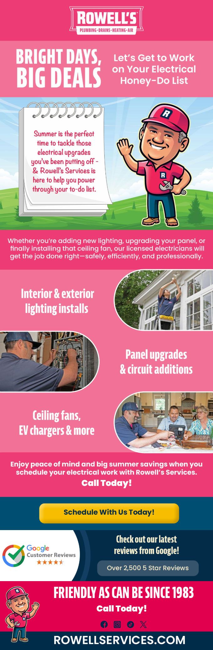 Enjoy peace of mind and big summer savings when you schedule your electrical work with Rowell's Services.