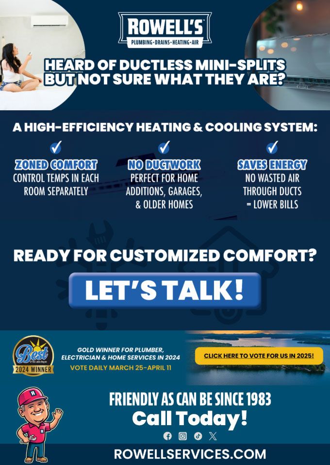 "Friendly As Can Be Since 1983!" When you need help with your plumbing, drains, heating, cooling or electrical in Wolfeboro, you can always rely on Rowell's Services! Call us now or book online!